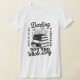 My overall review is that the T-shirt is nice, it fits true to size however the font is significantly smaller than advertised and you can't read it. The printing is unreadable and there is a strain to read it. It does not look like the advertised product. Maybe the shirt color is darker or a larger more visible font should have been used. Photos with and without flash and font is barely legible.