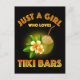 Just A Girl Who Loves Tiki Bars. Aloha! Take this to your next Hawaiian luau party, tropical vacation, or to the tiki bar or tiki room and enjoy a tropical drink. Great to take on a tropical island cruise, honeymoon, summer vacation or spring break. Perfect summer gift for lovers of Hawaii, Hawaiian tiki bars and tiki culture. Enjoy a nice tropical cocktail or mixed drink on the beach. Design has a picture of a coconut with a straw and yellow hibiscus flowers.