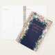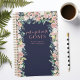 Cute motivational quote planner for women. Brush hand lettered script typography that says "Just a girl with goals". Surrounded by watercolor florals on a navy blue background. Personalize this custom design with your own name, text, and year.