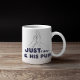 "Just a Guy and His Pup" Navy Blue Mug – A deep navy-blue mug featuring the sweet phrase "Just a guy and his pup", perfect for celebrating the bond between man and dog. Ideal for coffee, tea, or any warm drink while enjoying time with your four-legged best friend.