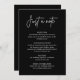 The "Just a Note Black Minimal Wedding Enclosure Card" is the perfect fusion of modern elegance and practicality. Featuring a sleek black design, this card provides a stylish way to share essential details like directions, accommodations, or heartfelt notes. Ideal for couples who embrace a minimalist aesthetic, it complements any wedding invitation suite effortlessly. Its refined look ensures that important information is presented with clarity, making it a chic and thoughtful addition to your special day.