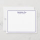Just A Note dark navy blue and white note card. Includes name, border and solid blue back.