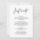 The "Just a Note Minimalist Wedding Enclosure Card" is a beautiful blend of simplicity and elegance. Designed for couples who appreciate a clean aesthetic, this card offers a refined way to share essential details—be it directions, accommodations, or special messages. Its minimalist design allows the content to shine, ensuring your guests receive important information without distraction. This card complements any wedding invitation suite, making it a perfect addition that enhances the overall experience of your special day.