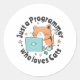 Awesome and funny design showing a cat on the computer and the saying "Just a programmer who loves cats". A must for all programmers and cat lovers.