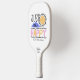 Have fun playing pickleball with this paddle that reads "Just Be Happy - Play Pickleball". Design features a pickleball "sun" and 3 lines of custom text - your name, monogram, pickleball club name, company name, location, phone number, etc. Makes a perfect gift for adults, kids, moms, dads, or anyone who loves the awesome game of pickleball.