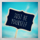 a chalkboard with the text just be yourself written in it against the blue sky, slight vignette added | Bigstock® - All Rights Reserved.