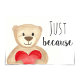 This "just because" watercolour card may seem simple, but it is very versatile. The front shows a big friendly bear holding a plush red heart. The interior contains the text "Just because – here's a big bear hug for you!". I have left the interior text editable, so that you can customize it to your needs.