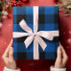 Just Blue and Black Buffalo Plaid Christmas Wrapping Paper Sheets