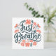 Just breathe card. Mental health mindfulness practice floral flowers boho aesthetic room decor small prints. Take a deep breath meditation yoga teacher coach calming anxiety quotes breathing reminder for women girls.