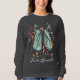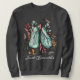 This colorful sweatshirt features a watercolor painting of lungs in aqua blue surrounded by botanical plants in pink and yellow on a dark gray sweatshirt. The words "Just Breathe" appear in a white script font, below the lungs.