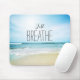 Beautiful sandy beach, blue waves and wispy sky with the words "just breathe". Paradise!
