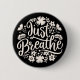 Just breathe button badge pins. Mindfulness practice floral flowers black and beige aesthetic outfit accessory. Take a deep breath meditation yoga teacher coach calming anxiety quotes breathing reminder for women girls.