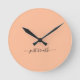 Modern yoga clock with a chic orange (peach fuzz) background and an elegant hand lettered black script with the quote "just breathe".