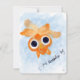 This is a flat notecard featuring a digitally hand painted orange watercolor fancy goldfish with adorable “bug eyes”. On a bubbly blue background are the script words, “Just bubblin’ by”. Thanks for checking out my shop!