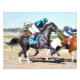 Just Call Kenny with jockey John Bisono, wearing the blue and black silks, are battling for position on the outside post in the Pa. Champion stakes at Parx racing and casino. This stunning black gelding, wearing the #9 saddlecloth, is a tall shiny beast of a horse. After a troubled start, he just missed winning this race by a neck to Page McKenny.