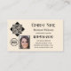 Business card featuring a minimalist black and ivory design with custom shapes. On the back is a QR code template as well as templates for your logo and custom photo. Modern with a classic/classy touch.