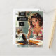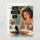 Just checking in postcard. Say hi and keep in touch with a friend of family member with this cute hyper realistic retro postcard with a funny illustration of a woman trying to catch a spilled cup of coffee her cat knocked over.