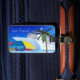 Cruise ship cruising by the beach with umbrella, palm tree, and the slogan Just Cruisin'. Your name and phone number may be placed on the back.