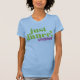My overall review is that the T-shirt is nice, it fits true to size however the font is significantly smaller than advertised and you can't read it. The printing is unreadable and there is a strain to read it. It does not look like the advertised product. Maybe the shirt color is darker or a larger more visible font should have been used. Photos with and without flash and font is barely legible.