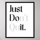 Introducing the "Just Don't Quit" poster, a striking piece of wall art designed to motivate and inspire you every day. This poster features a bold and impactful message, reminding you to persevere through any challenges you encounter. The minimalist design ensures the powerful words take center stage, making it a perfect addition to any room.
