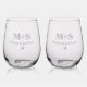 Just Engaged Cheers Bride Groom Monogram Initials Stemless Wine Glass