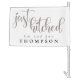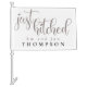 You just got wed, so why not shout it from your car rooftop, with this typographical design Just Hitched in an elegant Script with romantic heart motifs, and easily personalise with your first names and surnames beneath. You can also change the white background to another color via the Click to Customize Further option if you wish. The same design is on the other side.