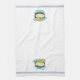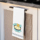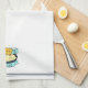 This funny cheese pun kitchen towel features the play on words phrase "just in queso" with a smiling tortilla chip dipping into a bowl of queso.