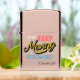 This golden lighter features the encouraging text "JUST KEEP Moving FORWARD". "JUST" and "FORWARD" are in a simple white and blue font, respectively, while "KEEP" is in pink, and "Moving" is in a stylized yellow script with a black outline. The design promotes a message of perseverance and progress.