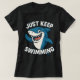 This cheerful cartoon shark beams with a toothy grin and a determined spirit. Surrounded by the uplifting phrase “JUST KEEP SWIMMING,” it’s a fun yet powerful reminder to keep moving forward—no matter how big the waves or how deep the sea. A splash of cuteness and motivation all in one.