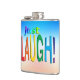 Well made flask, a little better than I had expected. Flask came in clear plastic box which gave it a nice presentation when I took it out of the zazzle packaging. Image is not printed on flask but on sticker. Don't know how this will hold up I haven't used it yet. This would make a Great gift! I plan to purchase more for friends! Cheers. I thought a little brighter than computer. Very crisp, writing wasn't