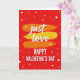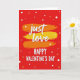 This greeting card features a deep crimson red background that sets a romantic, cozy mood right away ❤️. In the center, the words “just love” appear in smooth white cursive-style lettering, standing out clearly against the dark red. Behind that main message are two wide horizontal paint-like strokes, one orange and one golden yellow, which add warmth and a sunny glow. Scattered around the card are small white dots, simple heart outlines, and a few curvy squiggles that feel like confetti floating in the air. Near the bottom, “HAPPY VALENTINE’S DAY” is printed in white all-caps letters in a simple, modern letter style. A slight shadow behind the white text gives the words a little depth without distracting from the design. It feels meaningful to give because it keeps the message direct and kind, making it easy to share love or friendship with someone special 🥰. Hope it helps you share Valentine’s Day sentiments with warmth and care.