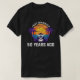 My 11 yo wore adult XL (5’7” 165#). The 8yo is small framed. She wore adult small and tied it in the back. Grandma wore adult large with long sleeve shirt underneath. Tall girl adult medium. Dark haired male adult large. Good quality dark Heather gray, Gildan brand shirt. -it was next up from basic choice and cost about $20 per shirt. Not too thick or thin. Washed and dried well, no major shrinkage. Not see-through. Can wear a bra under it fine. Screen print is just as shown and well done, front and back.
