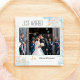 Just Married Blue Coral Abstract Marble Gold Holiday Card