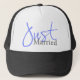 Just Married (Blue Script)...This cute just married graphic design is perfect for any bride and groom to wear on their honeymoon. Perect shirt for any husband and wife to wear to show the world that they were just married. Unique wedding shower gift idea for any bride to be and groom to be. See our shop for more unique and fun bride, groom, wedding, shower, bridal party, bachelor, and bachelorette shirts and gifts.