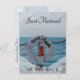 Nautical theme boat wedding announcement with a space to add your own bride and groom photo. Blue sky and turquoise sea with a romantic version of a buoy.