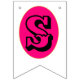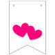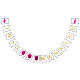 Gold JUST MARRIED bunting flags, initials and magenta hearts on whit background. A versatile banner or Bunting flags for most weddings. The first flag has magenta double heart, the following flags has the lettering ‘JUST MARRIED» with the initials to the couple. The last flag has a magenta double heart again. Customize this Bunting flags with your letters for your big day. Anice decor behind the couple under the reception dinner.