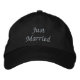 This Just Married Cap is shown in Black with Silver embroidered text.
