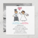 Plain white envelopes are included with paper invitations and will come to fit the invitation size you select. If you don’t need the envelopes, you may choose to not receive them by selecting the dropdown below "Envelopes" and choosing "None." If you’d like to have a design on your envelopes, you can browse all of these available envelopes to find the design that complements your Just Married Cartoon Wedding Couple Announcement.