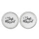 Sterling Silver plated cufflinks shown in a black and white color just married print.