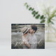 Just Married Cursive Script Overlay White Photo Announcement Postcard