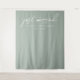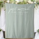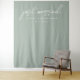 Just Married Elegant Calligraphy Wedding Backdrop Sage Green Color