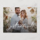 Announce your wedding to family and friends with this modern photo announcement postcard. It features just married typography script and a single photo. Personalize by adding names, date, and message.