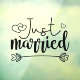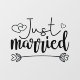 Spread the news of your wedding with this romantic white "Just Married" sticker featuring a modern script font text decorated with lovely hearts.
