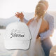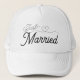 Just Married—fun wedding and honeymoon hats for bride and groom. Announce your newlywed status to everyone. Elegant script font with a cute heart illustration. Simple and sweet black lettering.