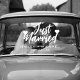 Celebrate your holy matrimony in style with this cute Just Married car window cling. Apply it to your honeymoon vehicle rear window. Customize it by the bride and groom's name and wedding anniversary date.