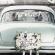 Celebrate your holy matrimony in style with this cute Just Married car window cling. Apply it to your honeymoon vehicle rear window. Customize it by the bride and groom's name and wedding anniversary date.