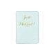 Passport holder in mint green with the text in gold color: Just Married! Great wedding gift for a just married couple for their honeymoon vacation.