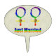 Two rainbow symbols for women and Venus announce your new "Just Married" status. Great gifts for the wedding and the reception afterward.