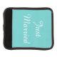 Custom luggage handle wrap shown in turquoise with just married text. Customize this item and add names or buy as is.