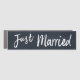 Fun way to let other drivers know that someone just got married. Modern black chalkboard background with white brush script style typography. Makes a fun surprise for the wedded couple as they drive away on their honeymoon.